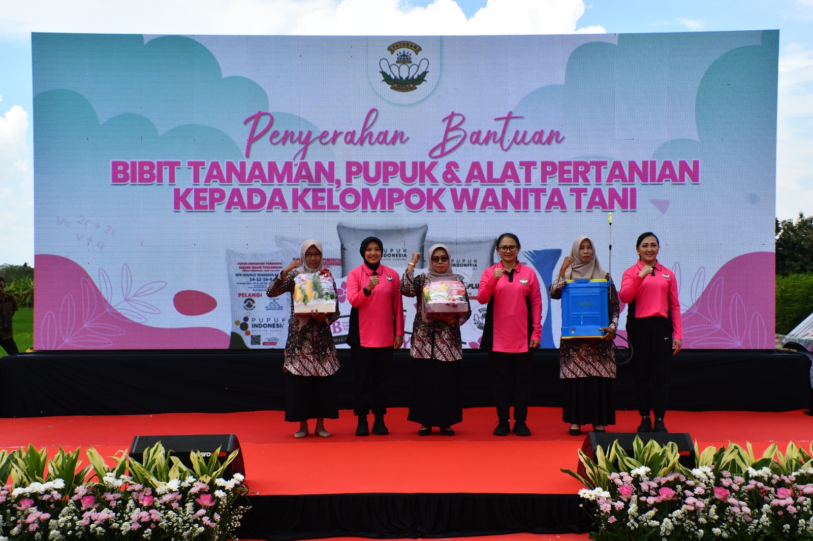 Sejumlah bantuan yang diberikan berupa 8 ton pupuk untuk Ibu Partini, bibit jagung untuk Ibu Alip, dan prayer hama elektrik untuk Ibu Sumarsih.