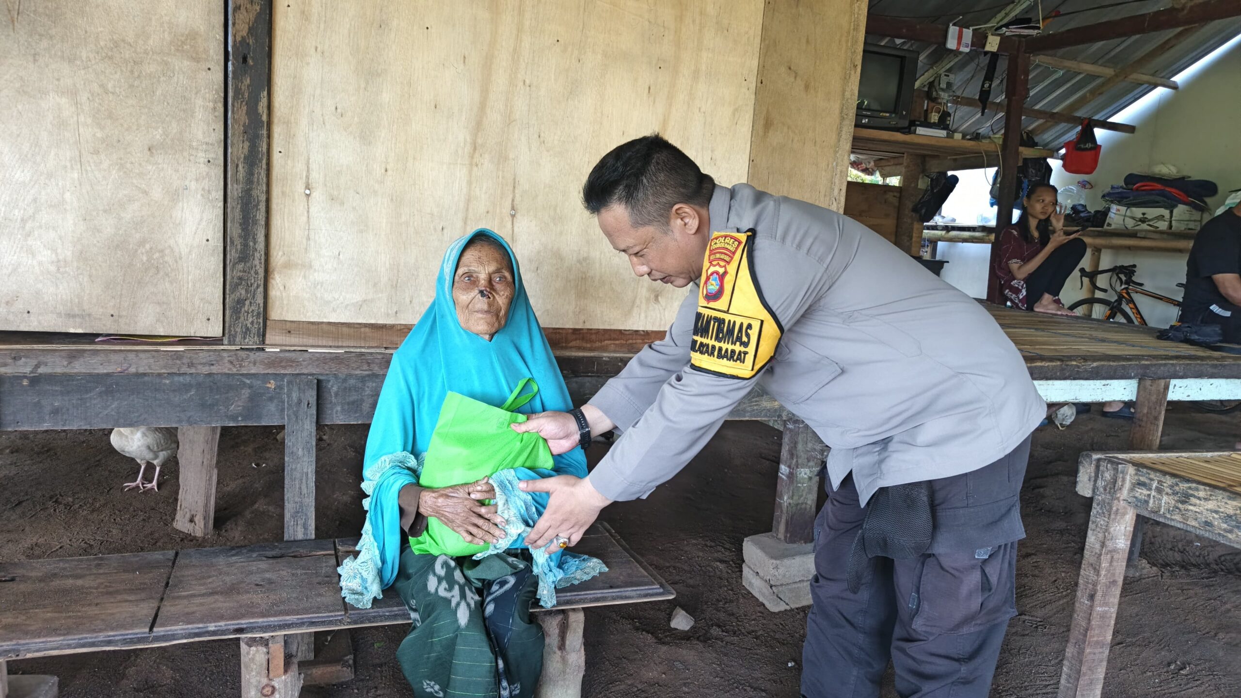 Dalam kegiatan tersebut, Bhabinkamtibmas Desa Batulayar Barat secara langsung menyerahkan bantuan berupa bahan makanan bergizi tinggi kepada dua orang lansia di dusun tersebut.