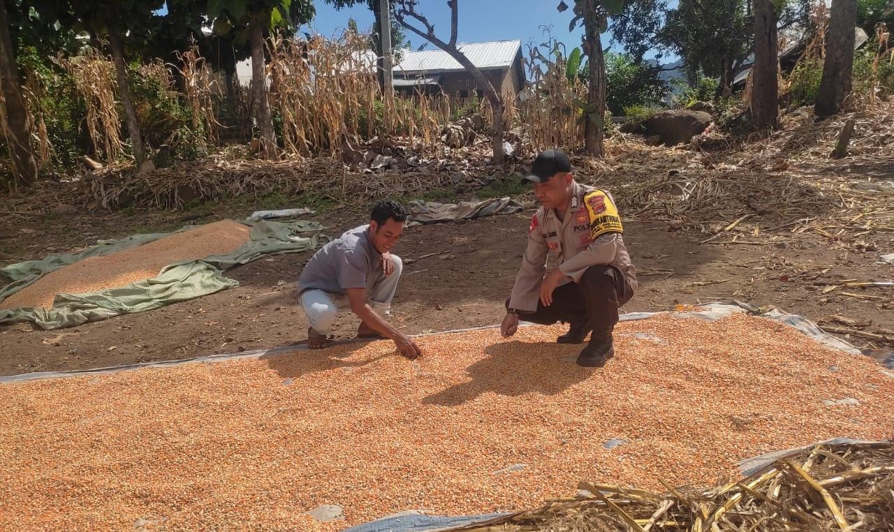 Partisipasi Aktif Sukseskan Program Prioritas Presiden RI, Bhabinkamtibmas Polsek Donggo Bantu Proses Pengeringan Jagung Warga