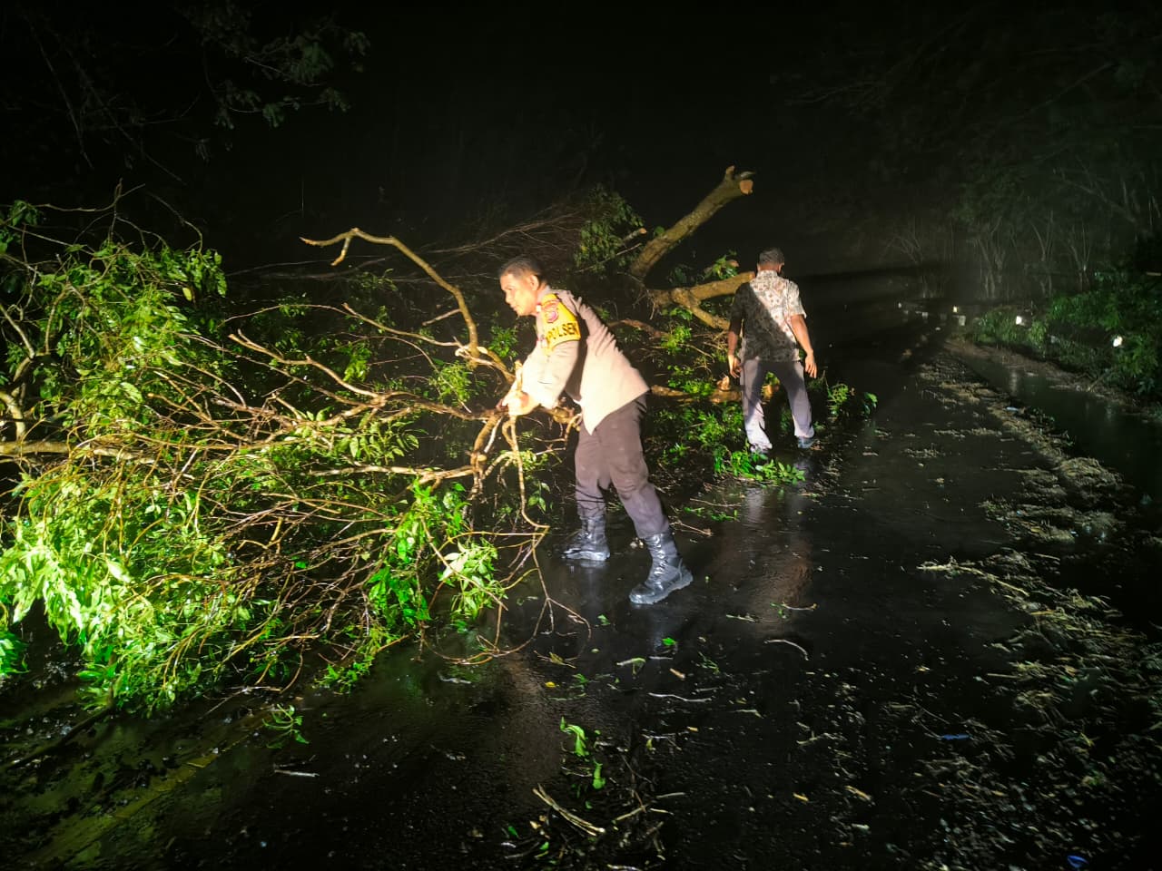 Polisi bersama BPBD dan Dinas PU terus berkoordinasi untuk mengerahkan alat berat dan melakukan monitoring cuaca ekstrem.