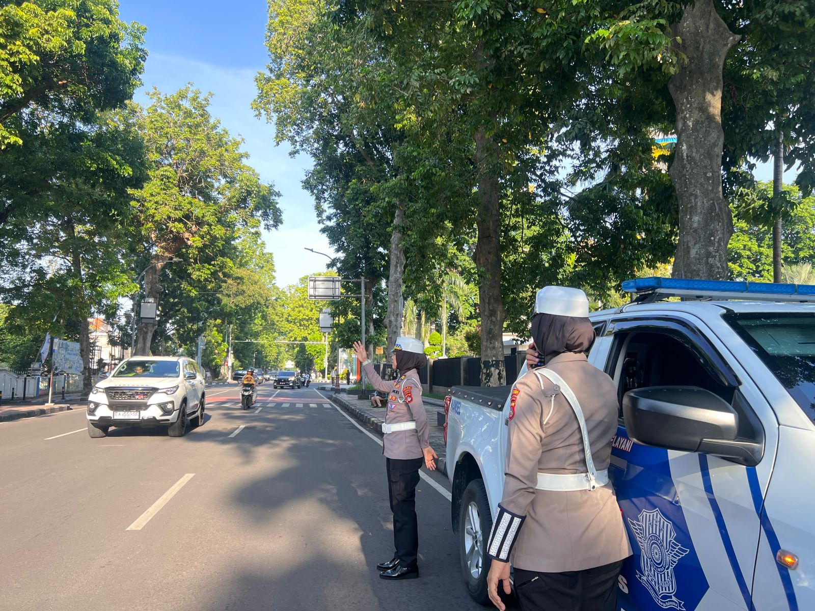 Selain memberikan imbauan, petugas juga membagikan brosur edukatif dan melakukan dialog singkat dengan pengendara serta pelajar yang melintas, agar pesan keselamatan dapat tersampaikan secara langsung dan mudah dipahami.