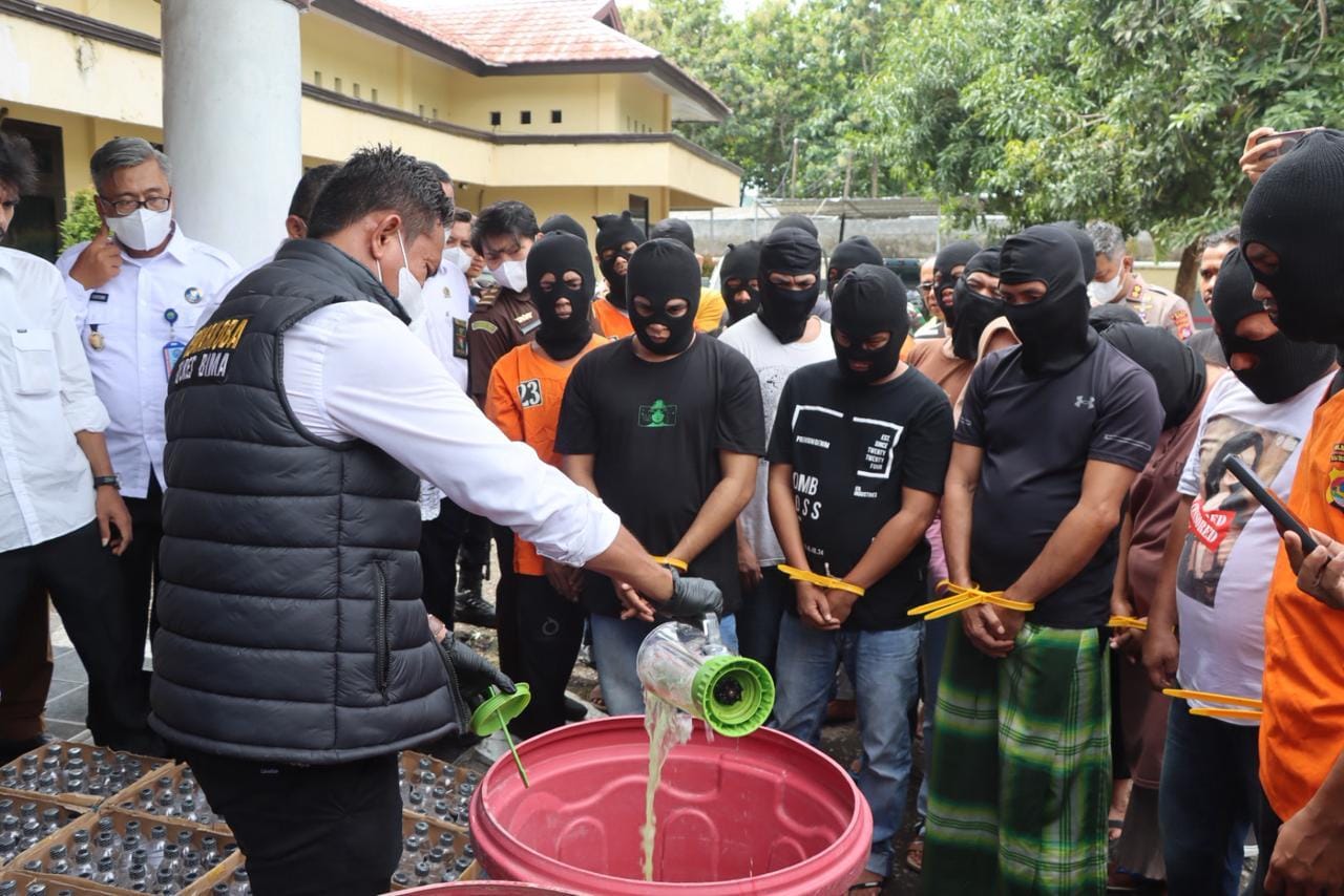 Lebih lanjut, Kapolres Bima menyampaikan bahwa sepanjang tahun 2025, Polres Bima telah empat kali melaksanakan pemusnahan barang bukti, sebagai bukti konsistensi dan kesinambungan upaya pemberantasan narkotika dan peredaran minuman beralkohol ilegal di wilayah hukumnya.